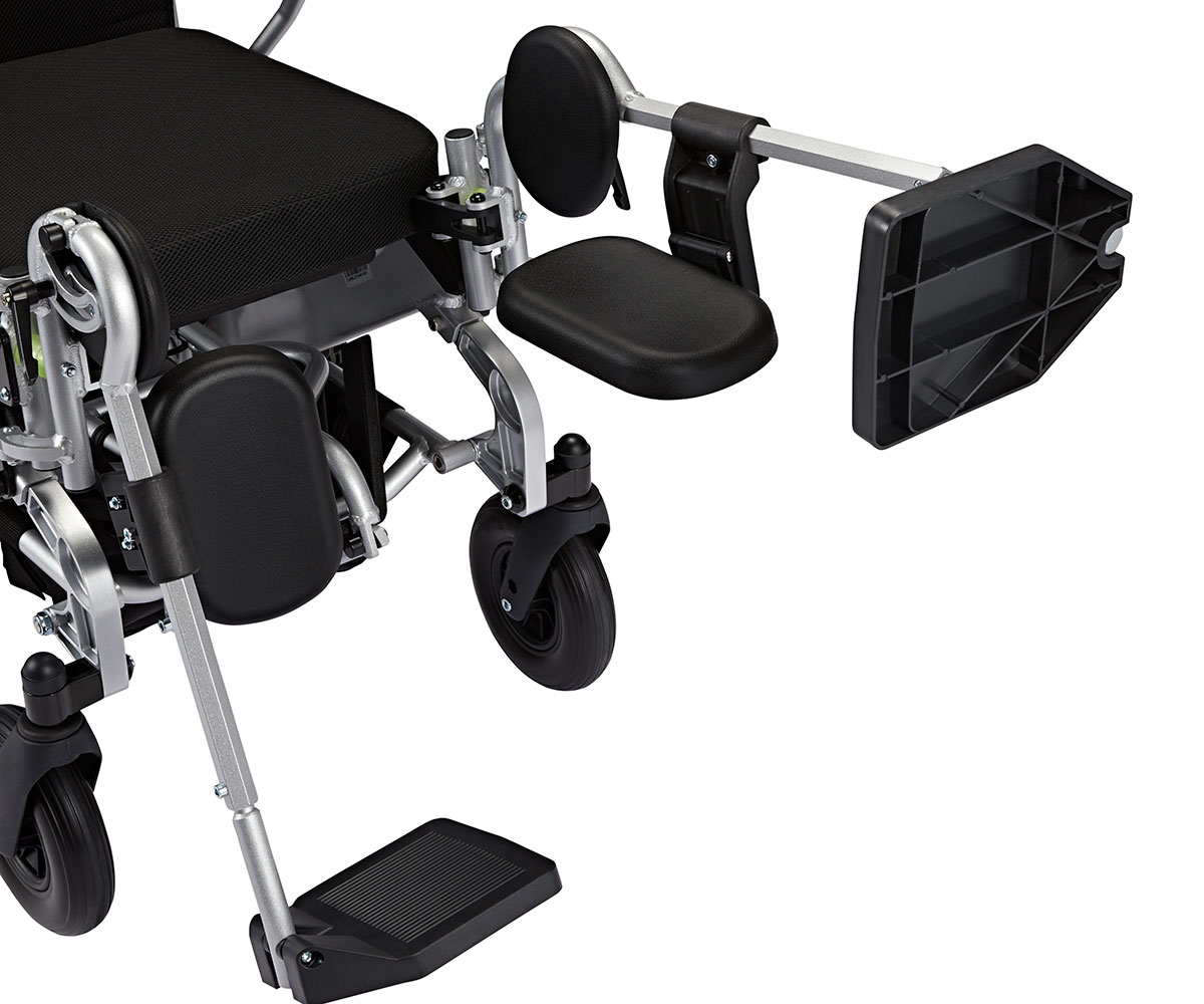 Gdy trzeba wsiąść lub zejść z wózka inwalidzkiego, można łatwo złożyć podnóżki na bok. Co więcej, można je łatwo odłączyć, dzięki czemu transport jest wygodniejszy, a w razie potrzeby można używać też standardowego podnóżka Eloflex.
