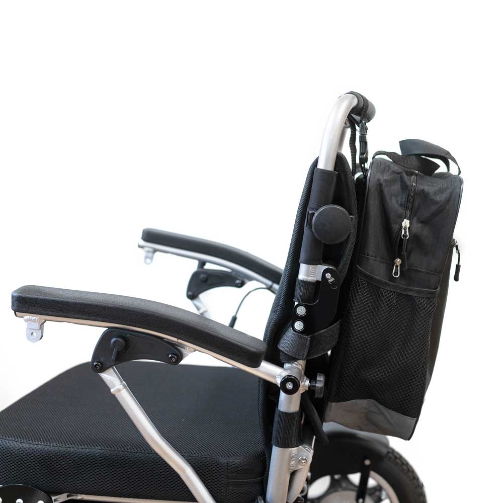 Nasza torba na oparcie, zaprojektowana tak, aby idealnie pasowała do wszystkich modeli Eloflex, to idealne połączenie przestronności i trwałości. Tę wszechstronną torbę montuje się za pomocą pasków wokół oparcia wózka inwalidzkiego, a zdejmuje lub zakłada z powrotem bez wysiłku za pomocą klamer szybkomocujących i pasków VELCRO®. Oprócz dużej komory głównej, torba wyposażona jest w przestronną kieszeń przednią i poręczne boczne kieszenie z siatki, oferujące wiele opcji przechowywania rzeczy. Torba na oparcie wyposażona jest w taśmę odblaskową zwiększającą bezpieczeństwo. Mieści 16 litrów i ma 39 cm wysokości, 37 cm szerokości i 12 cm głębokości.