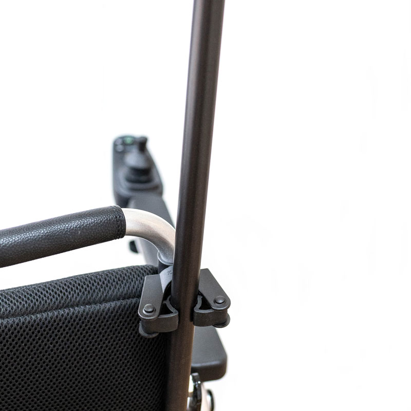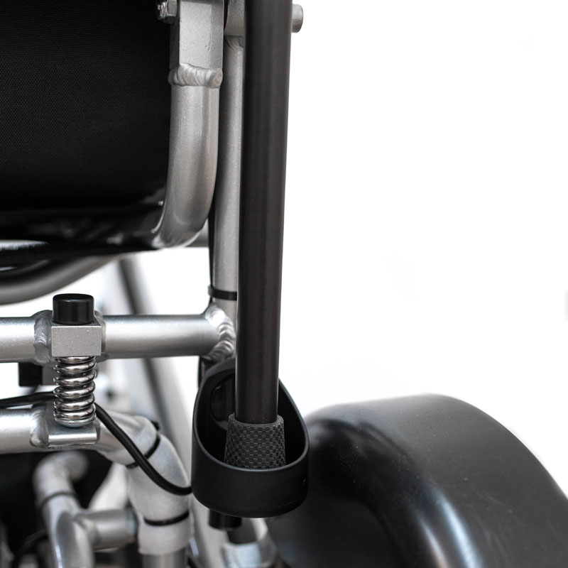 Uchwyt na kule Eloflex jest niezbędnym akcesorium dla osób poszukujących wygodnego rozwiązania do przenoszenia kul lub laski. Uchwyt na kule pasuje do wszystkich kul i lasek o standardowych wymiarach i nie wymaga regulacji w przypadku zmiany laski lub kul. Uchwyt na kule mocuje się za pomocą dołączonych śrub z łbem Torx, które można przymocować do ramy wózka Eloflex.