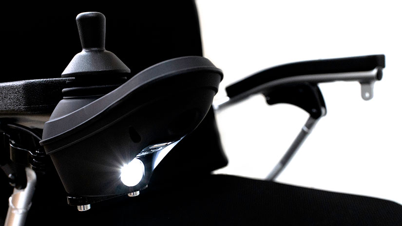 Zestaw Eloflex A zapewnia elastyczność w wyborze idealnej konfiguracji do własnych potrzeb. Joystick przez cały czas pozostaje na podłokietniku, co daje Ci możliwość przejęcia kontroli w razie potrzeby. Nowy joystick wyposażony jest również w lampkę, która oświetla drogę przed wózkiem, choć z funkcji tej można korzystać tylko podczas jazdy bez wykorzystania systemu sterowania przez opiekuna.