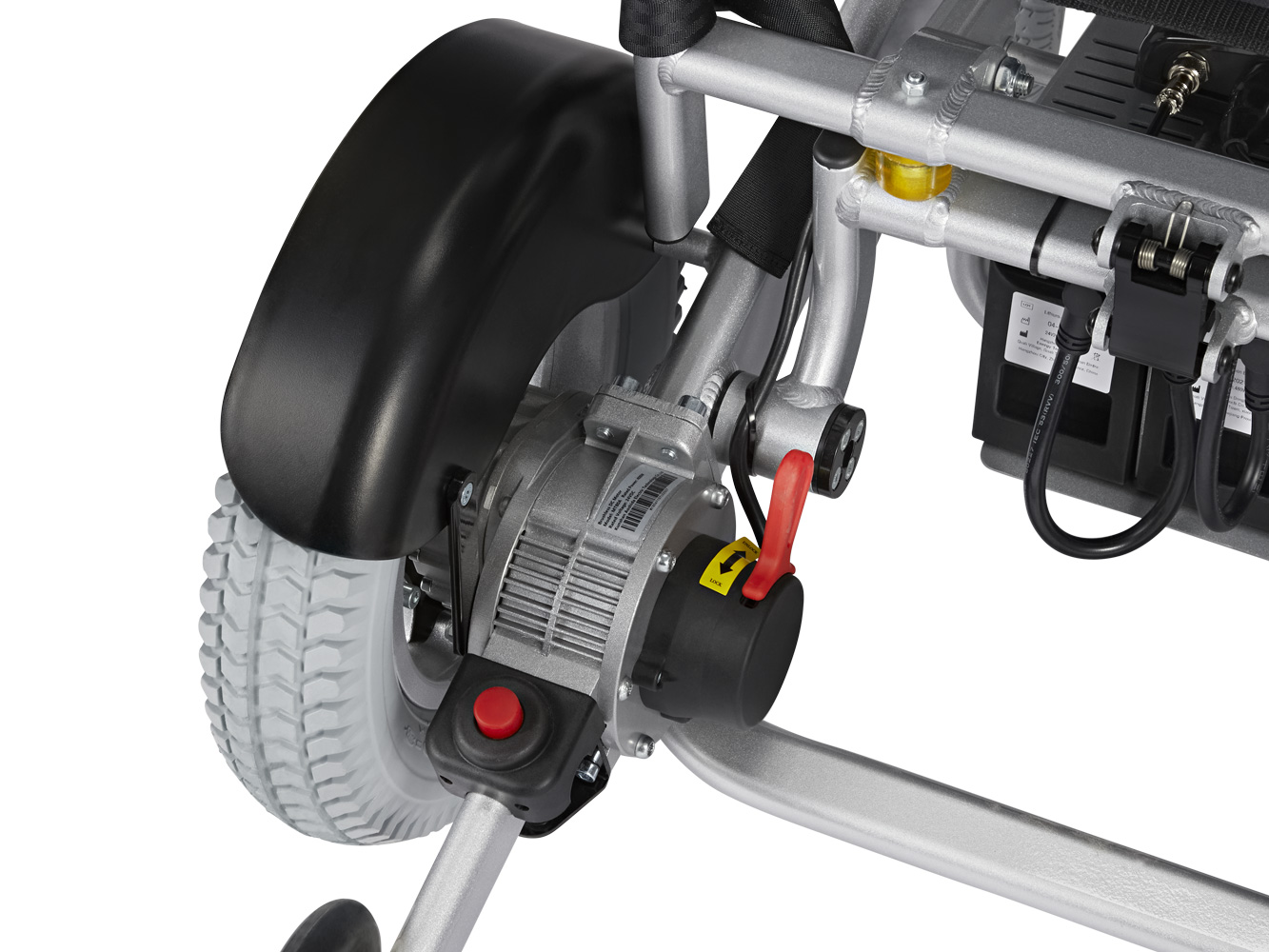 Wyposażony w takie funkcje jak podwójne zawieszenie i pneumatyczne opony z głębokim bieżnikiem, model ten jest idealny dla osób mieszkających na obszarach wiejskich. Regulowane podłokietniki, bardzo duży podnóżek, wygodna poduszka i miejsce na trzy akumulatory to tylko niektóre z zalet tego modelu.