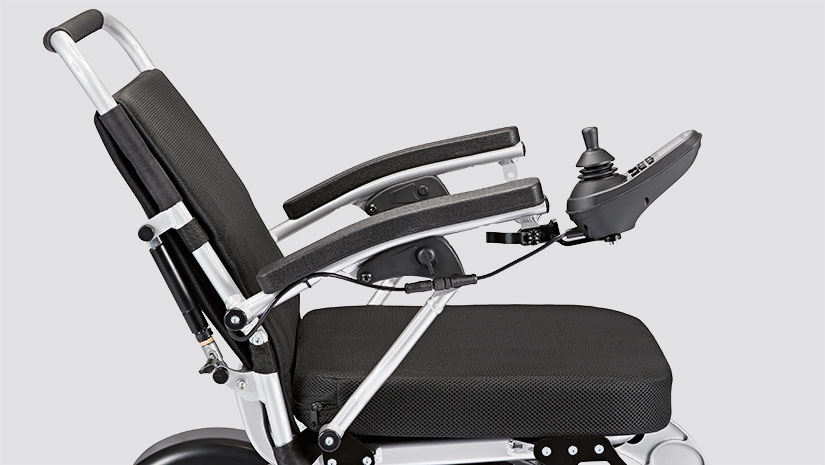 Nasze sprytnie zaprojektowane mocowanie joysticka przybliża użytkownika do krawędzi stołów, zwiększając dostępność. Podnóżek można wygodnie złożyć pod siedzeniem, a duże pompowane tylne koła zapewniają wygodną jazdę nawet po nierównym terenie. Dzięki dwóm akumulatorom w standardzie i miejscu na trzeci akumulator, zasięg zwiększa się do 45 km, zapewniając możliwość 7,5 godziny użytkowania na jednym ładowaniu.