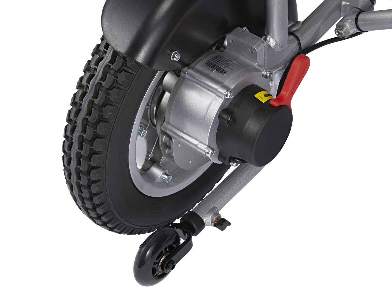 W tym modelu dostępne są duże, 12-calowe, wypełnione powietrzem tylne koła, zapewniające doskonałą przyczepność i trakcję na wszystkich nawierzchniach. Niezależnie od tego, czy są to drogi szutrowe, czy brukowane, będziesz cieszyć się płynną i wygodną jazdą.