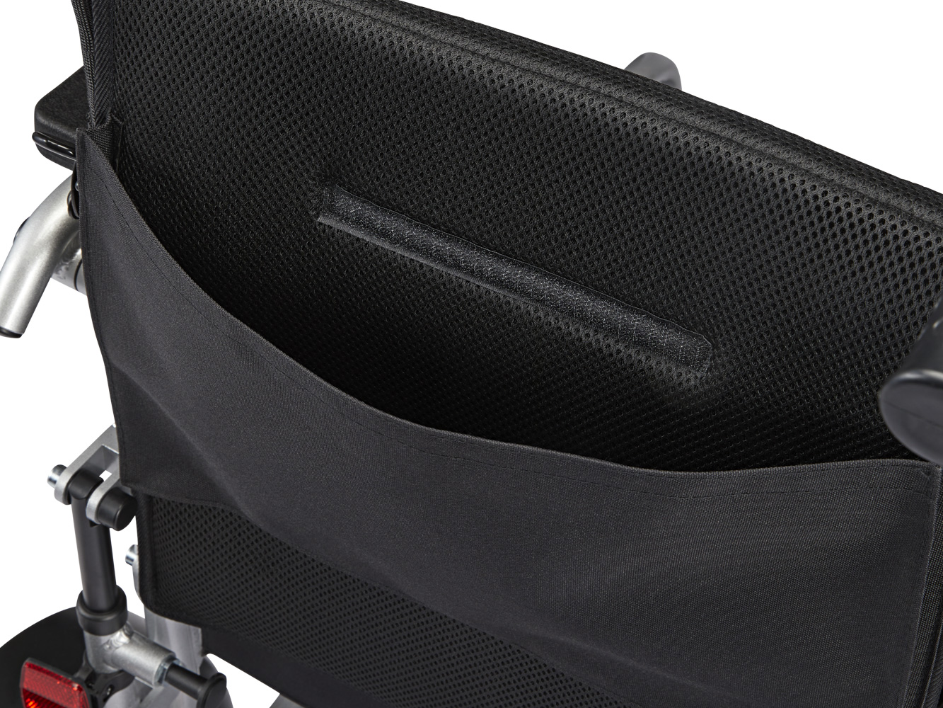 Znajdujące się z tyłu oparcia klasyczne uchwyty do jazdy pozwalają członkowi rodziny lub osobie sprawującej opiekę ręczne pchanie wózka. Gwarantują również świetne oparcie jeżeli użytkownik chce korzystać z wózka z napędem elektrycznym jako chodzika na krótsze dystanse.