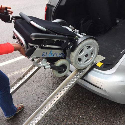 Rampa załadunkowa jest cennym narzędziem do bezpiecznego załadunku wózka Eloflex do samochodu, zwłaszcza jeśli podnoszenie ciężkich przedmiotów stanowi dla Ciebie wyzwanie. Możesz wjechać na rampę wózkiem Eloflex w pozycji złożonej, korzystając z silników wózka. Istnieje wiele różnych rodzajów ramp: długie, krótkie, szerokie i wąskie.... Eloflex oferuje dwa różne modele ramp, które można znaleźć w naszej sekcji akcesoriów. Na poniższym obrazku przedstawiamy rozwiązanie przesłane nam przez jednego z naszych użytkowników, które sprawdziło się całkiem nieźle.