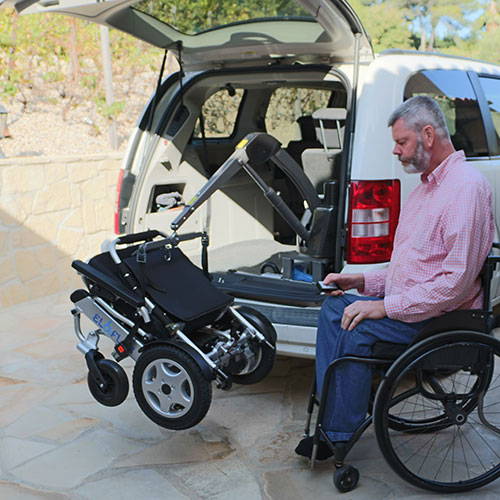 Wygodniejszym, lecz nieco droższym rozwiązaniem jest zainstalowanie w bagażniku samochodu podnośnika, który ułatwi załadunek wózka Eloflex. Jest to najlepsze rozwiązanie, jeśli użytkownik porusza się na wózku inwalidzkim i chce mieć możliwość samodzielnego przewożenia urządzenia Eloflex w samochodzie. Na rynku dostępnych jest wiele rozwiązań i modeli podnośników, lecz biorąc pod uwagę kompaktową, lekką konstrukcję Eloflex, często wystarczy dość prosty podnośnik. W celu uzyskania dalszych informacji i wskazówek zalecamy skontaktowanie się z najbliższą firmą zajmującą się montażem akcesoriów samochodowych.